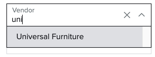 The Vendor field connects to your Pro Cloud Vendor Glossary. Click into the field and begin to type your Vendor's name to see matching Vendors. Click to select the proper one. *A vendor MUST be in your Pro Cloud Vendor Glossary in order to be included with your item details. If you have not created the Vendor in Design Manager already, leave this field blank (it is not required and can be added later). You can add the new Vendor inside Pro Cloud and then select it for this item on the Whiteboard.